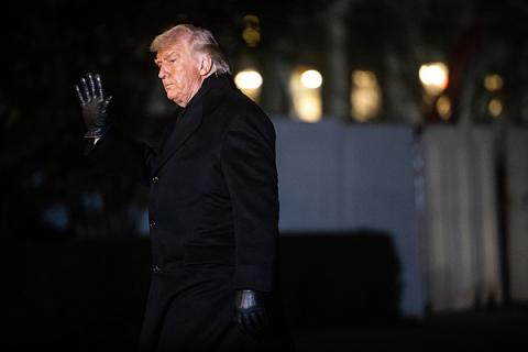 1月22日,好意思国华盛顿,好意思国总统特朗普在从舟师陆战队一号下机后,走过白宫南草坪。图源:视觉中国