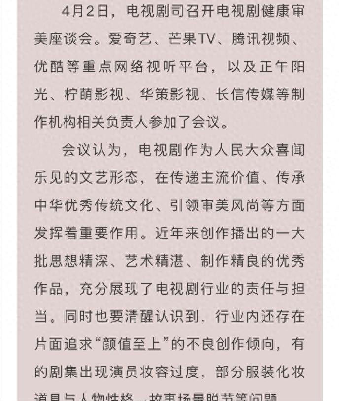4月2号,国度广电总局电视剧司召开茶话会,爱奇艺、腾讯视频、优酷、芒果TV四大平台,还有正午阳光、华策影视等头部制作公司整个到场。