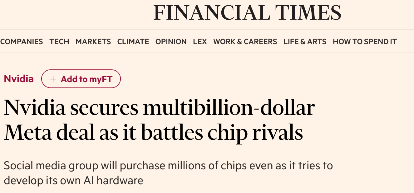 【大家网科技轮廓报谈】2月18日音讯,据《金融时报》报谈称,英伟达与Meta 书记已毕一项多年期、价值数十亿好意思元的芯片采购左券。凭证左券,Meta将购买数百万枚英伟达最新一代AI加快芯片,包括行将推出的“Vera Rubin”系列,并快活大鸿沟部署英伟达寂然中央处理器(CPU)以出手其东谈主工智能模子。