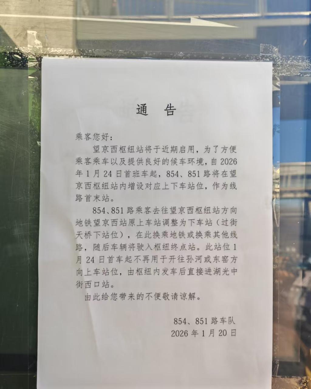 20日上昼,居住在望京西地铁站附进的一位市民沸腾地告诉记者:“昨天得知消防通过验收的音尘后,我今天也去瑕疵附进转了一圈,发现位于瑕疵东侧的854、851路公交总站一经贴出见知,说是望京西瑕疵站将于近期启用,从1月24日起这两条贯通也将把首末站迁入瑕疵内。”