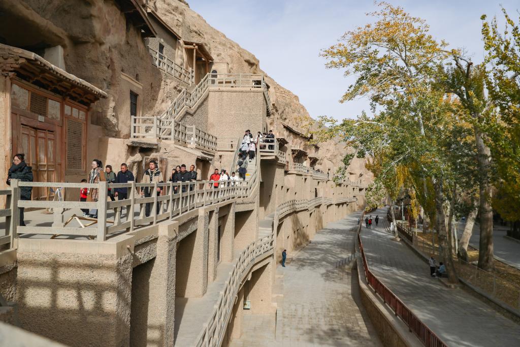 2024年11月14日,初冬时节,搭客在莫高窟参不雅游览。新华社记者 郎兵兵 摄