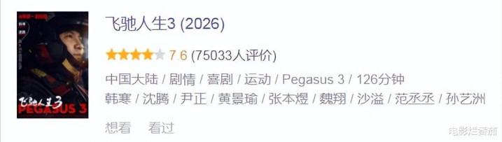 倒不是说《飞奔东说念主生3》仍是达到客岁《哪吒之魔童闹海》那样的高度,而是本年春节档影片举座发挥较弱,还莫得能与《飞奔东说念主生3》相抗衡的片子。豆瓣开分7.6,亦然春节档当今最高的影片,且与前作分数握平,可见韩寒的发挥非常巩固。