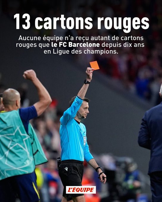 开云sports 队报: 巴萨近10届欧冠拿13张红牌, 红牌数目是同时系数球队最多